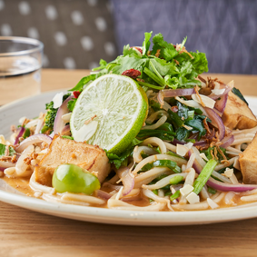 【99麺】とは、国内でも有数の米どころ秋田県の豊かな自然の中で育った国産米「大館産あきたこまち」の玄米から生まれた「玄米全粒粉麺」。自然と技術が見事に融合し、玄米の主要栄養素や本来の甘みをそのままに、保存が効き、さらに時短でおいしい、を実現。米離れも進む現代、古来より”完全栄養食”とされてきた玄米が、効能そのままに麺という形になることでさらに調理の幅を広げ、「10分で玄米食」という持続しやすい健康習慣を可能にしたのがこの完全栄養麺=99麺です。「ほぼ玄米」なのでごはんに合う味付けが自然に馴染み、麺料理にも丼料理にもなる。シンプルにも、ジャンクにも、シーンに合わせて自由に楽しめる、冷凍保存の新たな主食が生まれました。