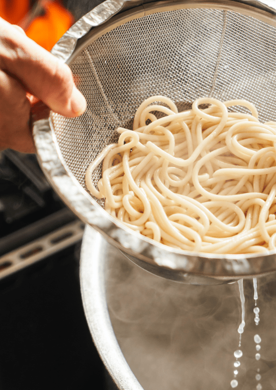 原材料の99%が玄米だから栄養的にいいのはもちろん、とにかくおいしいのがいい。炒め麺のときは10〜11分とゆで時間をやや長めにし、焼き目がつくくらい香ばしく炒めるとよりおいしく仕上がります。汁麺にする場合は、ゆでてからスープといっしょにさっと煮ると麺がスープの旨味を吸っておいしさが増します。焼きそばやナポリタンといった定番炒め麺にも、きっとグラタンに入れてもと、99麺レシピのおいしい妄想は尽きません。