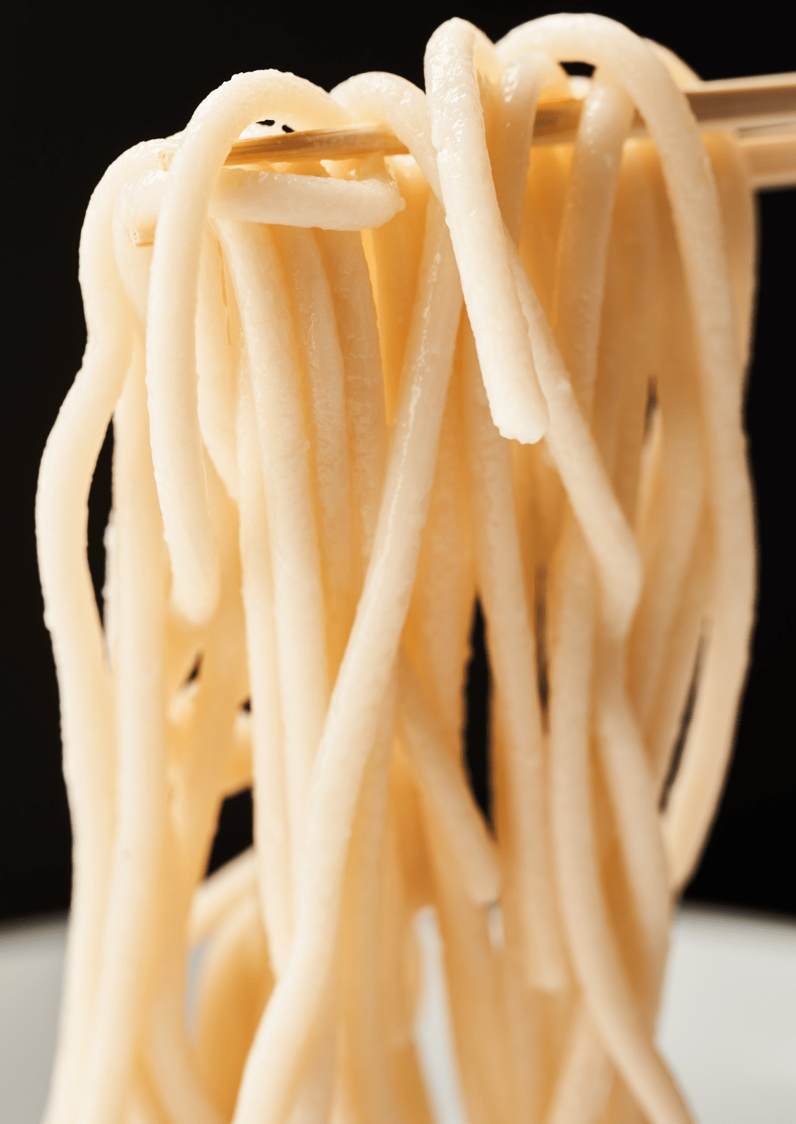 グルテンフリー、ヴィーガン、ダイエット、アレルギーなど、食環境も多様化する中で、同じメニューをおいしく楽しめる食材として、日本の米のチカラで健康を世界に届けるべく、【99麺】は誕生しました。その秘密は、非加熱の特殊技術により玄米を養分までまるごと20ミクロンという煙と同等の細かさにまで製粉した玄米全粒粉。その粒子のサイズと形状により1%以下の自然由来のつなぎだけで製麺できるため、基本の原料は玄米のみで、28品目の特定アレルゲンも不使用。ノンケミカルの殺菌技術も駆使した安全な製法で作られたノングルテン玄米麺が【99麺】です。